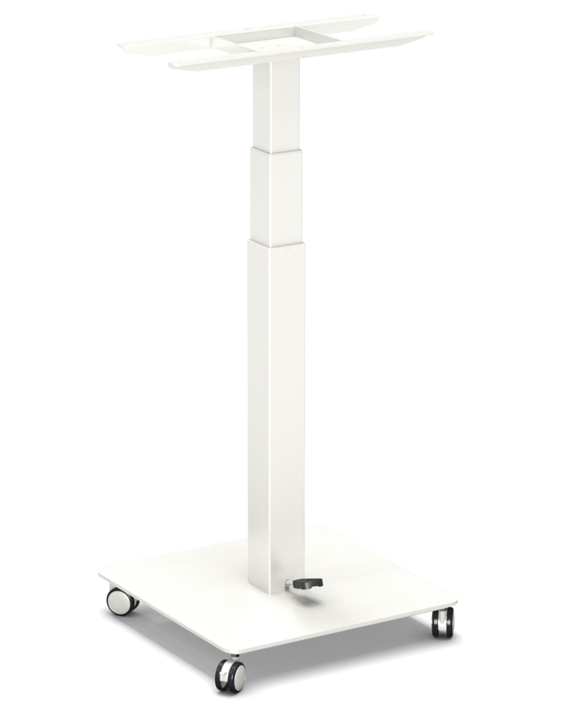 The TinyDesk is a height adjustable desk with foot gas spring controls, designed to fit into any workspace thanks to its compact and modern design. This sit-stand desk is available in black and white. The base has rounded corners and is 45 x 45 cm. The desk can serve as a workstation, side table, flex work spot or even as a dining table in an auditorium or cafeteria. The weighted baseplate ensures that the desk remains stable, even in the highest position.